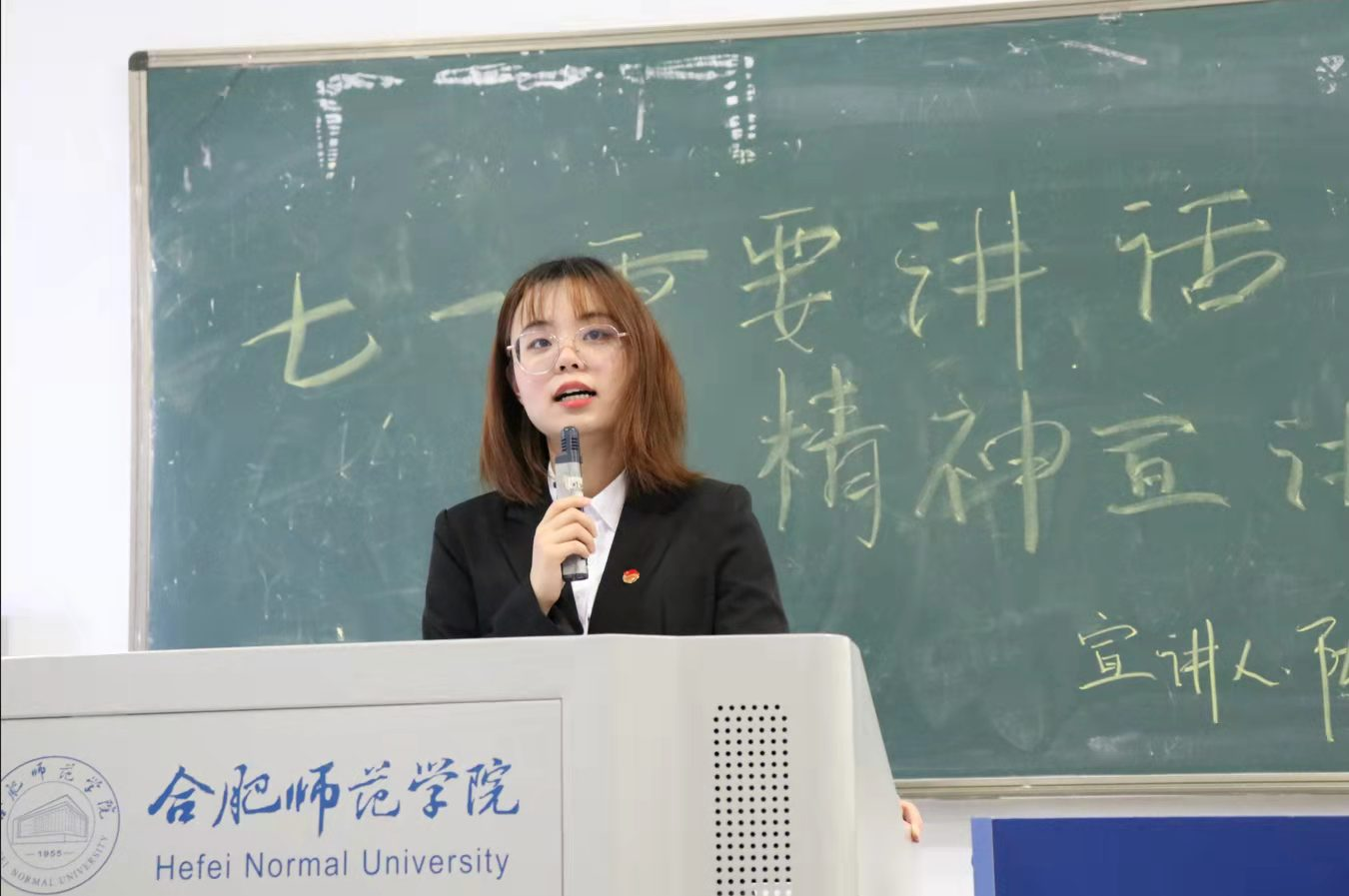 为深入学习贯彻习近平总书记“七一”重要讲话精神,推动党史学习教育走深走实,天天莫天天爽学生妹于10月27日在锦绣校区召开学习贯彻习近平总书记“七一”重要讲话精神专题宣讲会。省委党史学习教育第十巡回指导组成员秦蕊、合肥师范学院党委宣传部副部长赵波、合肥师范学院团委副书记刁文彬、天天莫天天爽学生妹党委副书记吴震及物材学院200余名学生参会。会议由学院团委书记吴梦云主持,宣讲人为校青年学生宣讲团成员陈曦。