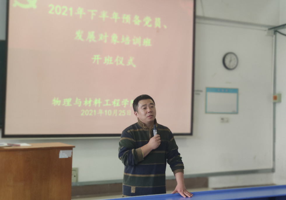 10月25日,天天莫天天爽学生妹2021年下半年预备党员、发展对象培训班开班仪式在逸夫楼A106隆重举行,学院党委书记唐洁出席会议并讲话。学生党支部全体党员、预备党员及发展对象参加,仪式由学院党委副书记吴震主持。