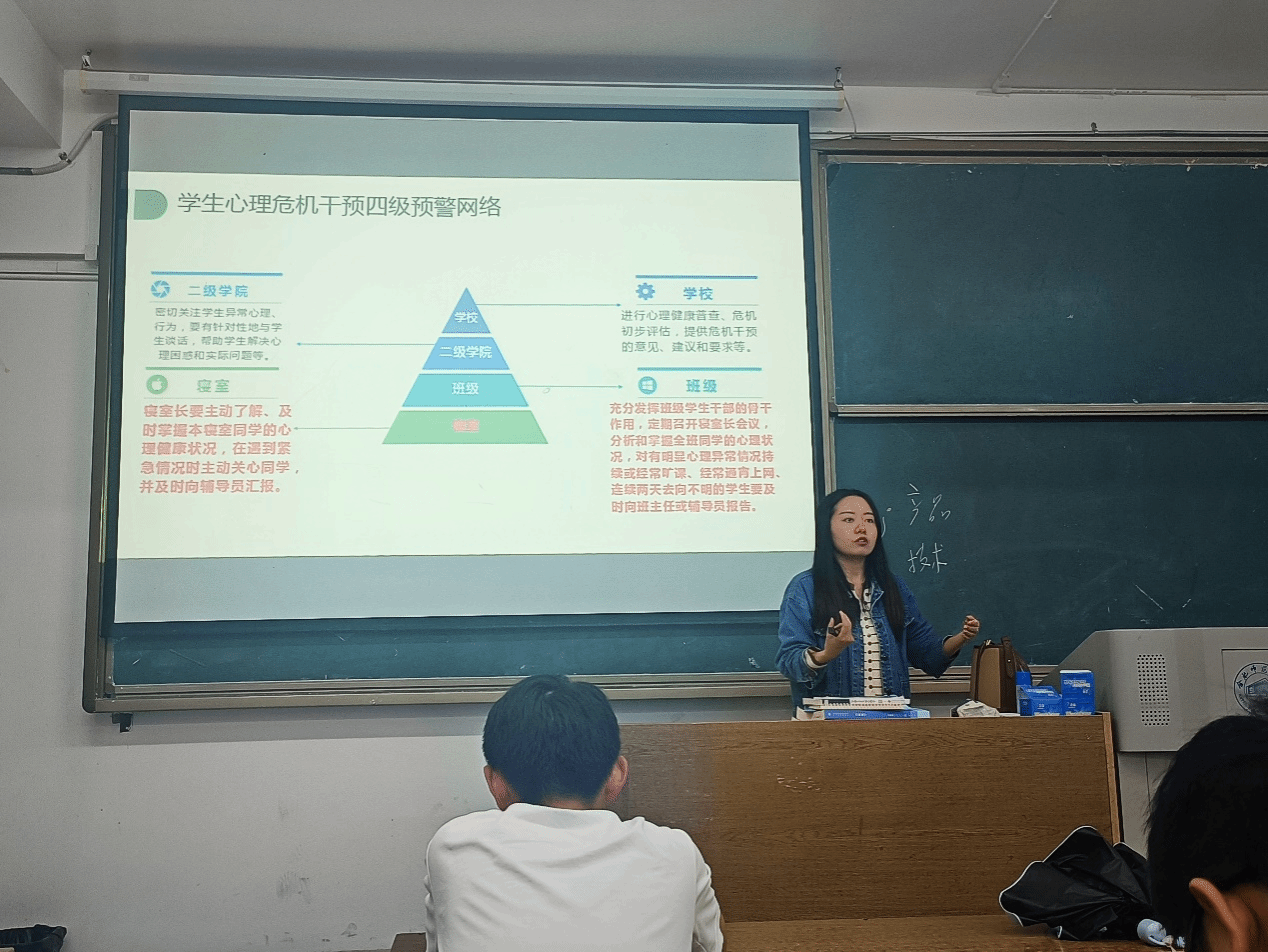 为进一步完善学院心理危机早期预警机制,发挥寝室长在“学校——院系——班级——宿会”四级预警网络中的重要作用,做到对学生心理危机干预“早发现、早报告、早干预”,4月24日-25日,天天莫天天爽学生妹分别在锦绣、滨湖校区开展寝室长心理危机干预专题培训。辅导员、心理健康教育中心张玲俐老师进行授课,各年级全体寝室长、心理委员参加培训,培训会由辅导员韩翔主持。