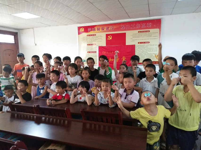 同一天,“望湖行知学堂”在六安市裕安区石板冲乡举行开班仪式,石板冲乡教育办主任和龙湖村村书记对“小先生”的到来表示热烈的欢迎和感谢。随后,“小先生”们带领小朋友开始了第一节课,他们通过自我介绍和一些互动的游戏,熟悉了彼此,课堂气氛非常活跃。“望湖行知学堂”以“助力留守儿童全面发展”为主题,后期将通过开设手工课和科学实验课锻炼孩子的动手能力,通过思想教育和安全教育课给孩子们树立正确的人生观念和自我安全防护意识,通过观看红色影片激发他们的爱国意识。