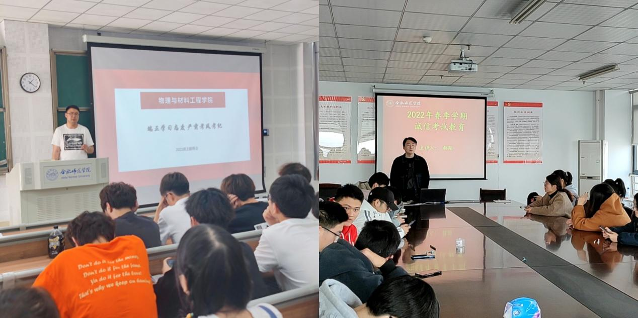 各班辅导员、班主任宣读了《高等学校学生行为准则》和《合肥师范学院考试违规处理办法》等文件,通过典型案例解读,教育同学们认识到考试违纪的严重性,端正学习态度,积极备考复习,以自己的努力争取优良的成绩。