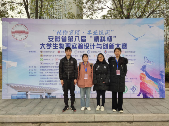 由安徽省物理学会主办的第八届安徽省大学生物理实验设计与创新大赛于11月30日至12月1日在合肥工业大学翡翠湖校区举办,全省共有24所本科院校参赛。我校选派的4名学生在两轮竞赛中沉着冷静思考、有条不紊操作,最终全部获奖,其中物材学院李阳荣获一等奖,陈紫怡获得二等奖,何盼盼、周高良分别获得三等奖。