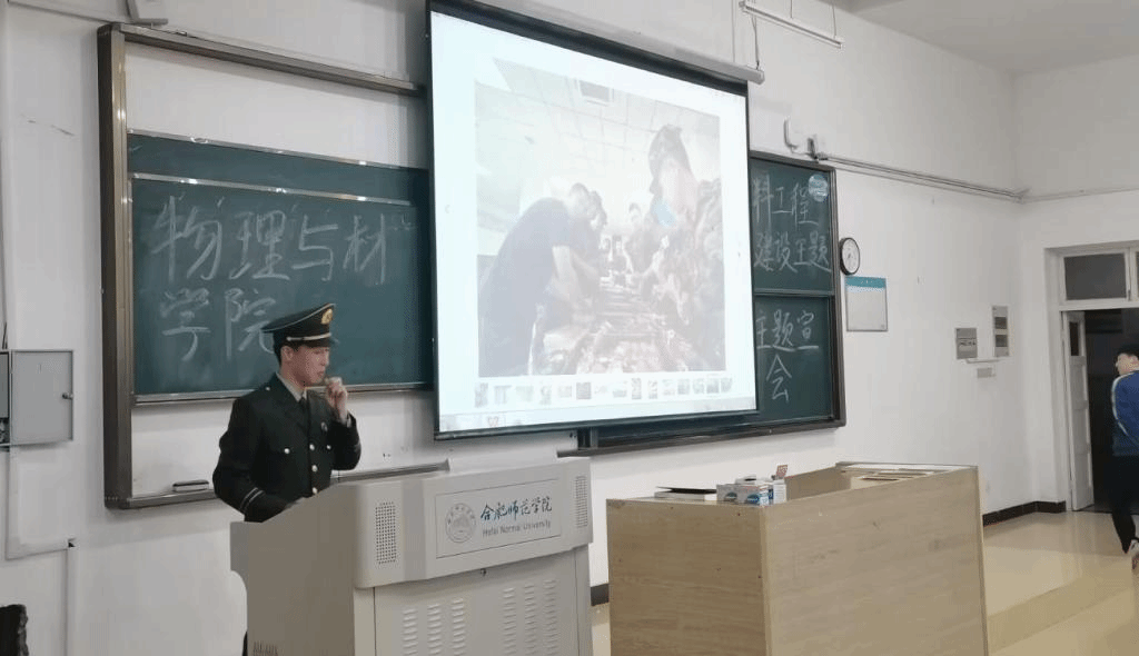 宣讲会上,韩翔向同学们详细介绍了大学生应征入伍的相关政策,号召物材青年学子把爱国之心化为报国之行,将青春之芳华融入钢铁长城建设的伟大事业中去。