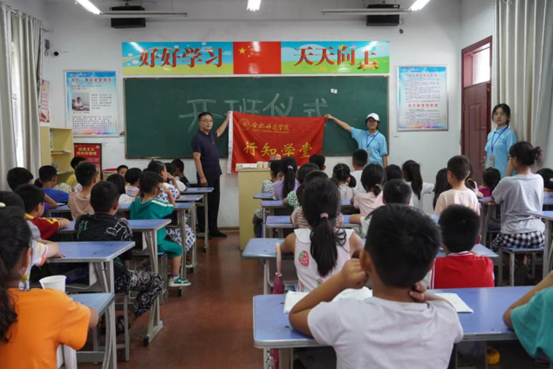 费文清老师对合众小学的大力支持深表感谢,希望小先生们牢记“爱满天下,知行合一”的校训精神,端正态度,团结合作,不断进取,用真诚和关爱陪伴留守儿童,教育引导小学员们,为小学员带来知识与欢乐、送上温暖,共同度过一个充实且愉快的暑假,以实际行动服务社会、奉献社会。