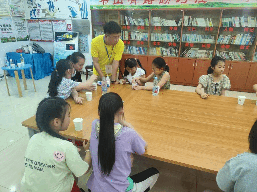 开班仪式结束后,天天莫天天爽学生妹“格物致知”科普服务队给小学员们带来了一堂“神奇的鸡蛋”科普实验课。小先生们生动有趣的讲解深深地吸引了小学员们,激发了他们对未知领域的好奇心和科学探索精神。