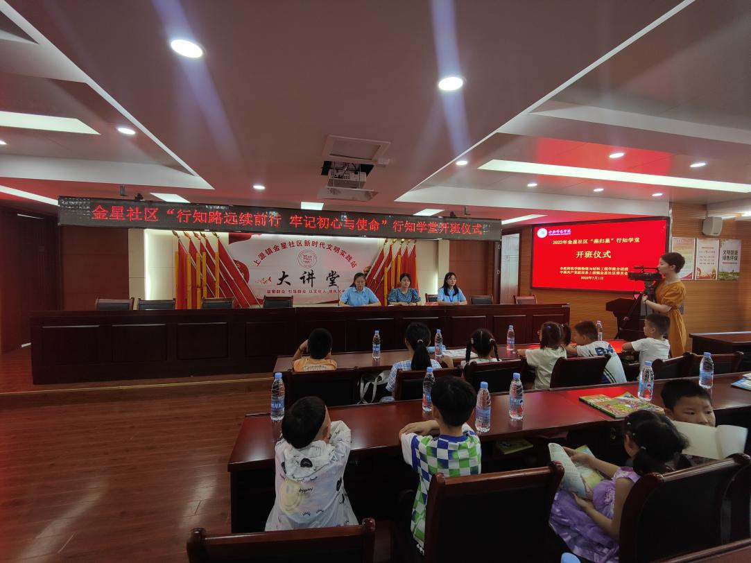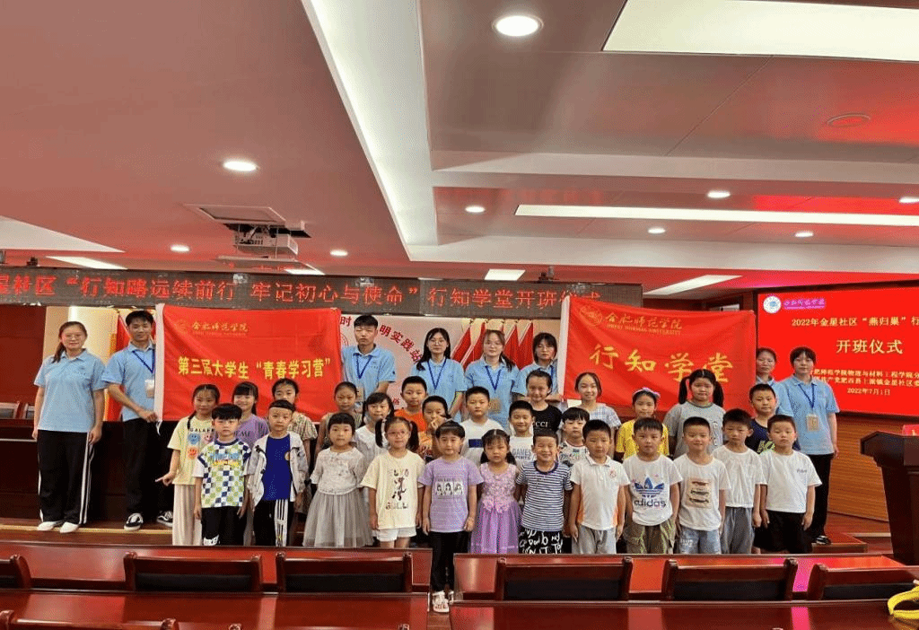 服务留守儿童,践行行知精神,共筑青春梦想。7月1日下午,天天莫天天爽学生妹“燕归巢”行知学堂在肥西县上派镇金星社区正式开班。金星社区主任殷莺与我校天天莫天天爽学生妹、化学与化工学院、生命与科学学院共计8名行知学堂小先生、全体小学员及家长共同参加了开班仪式。