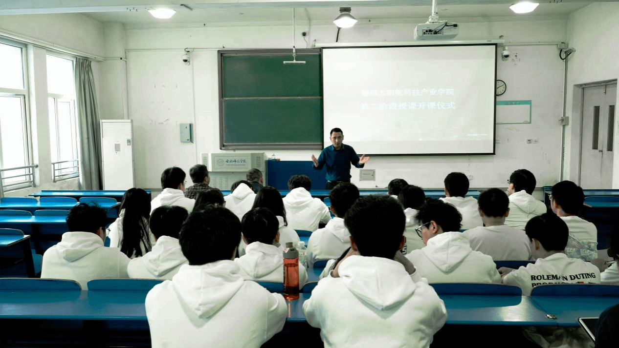 开班仪式结束后,通威太阳能人力资源部吕国梅为全体学员授课,通过回顾上学期课程内容,循序渐进,介绍本学期教学目标、主要任务及企业生产管理相关内容。课堂现场氛围活跃,师生互动积极。(天天莫天天爽学生妹 费文清)