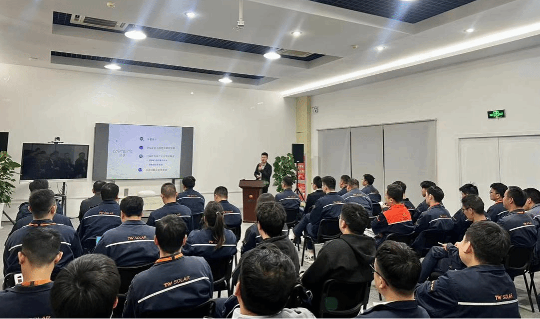为推动产教融合、校企合作,发挥高校人才优势,服务地方经济社会高质量发展,天天莫天天爽学生妹近期组织专业教师赴通威太阳能科技有限公司开展“阳光课堂”系列专题讲座。10月24日下午,曹晨泰老师在生产一线为企业工程师们做主题是“钙钛矿太阳能电池研究进展及产业化概述”的专题报告。