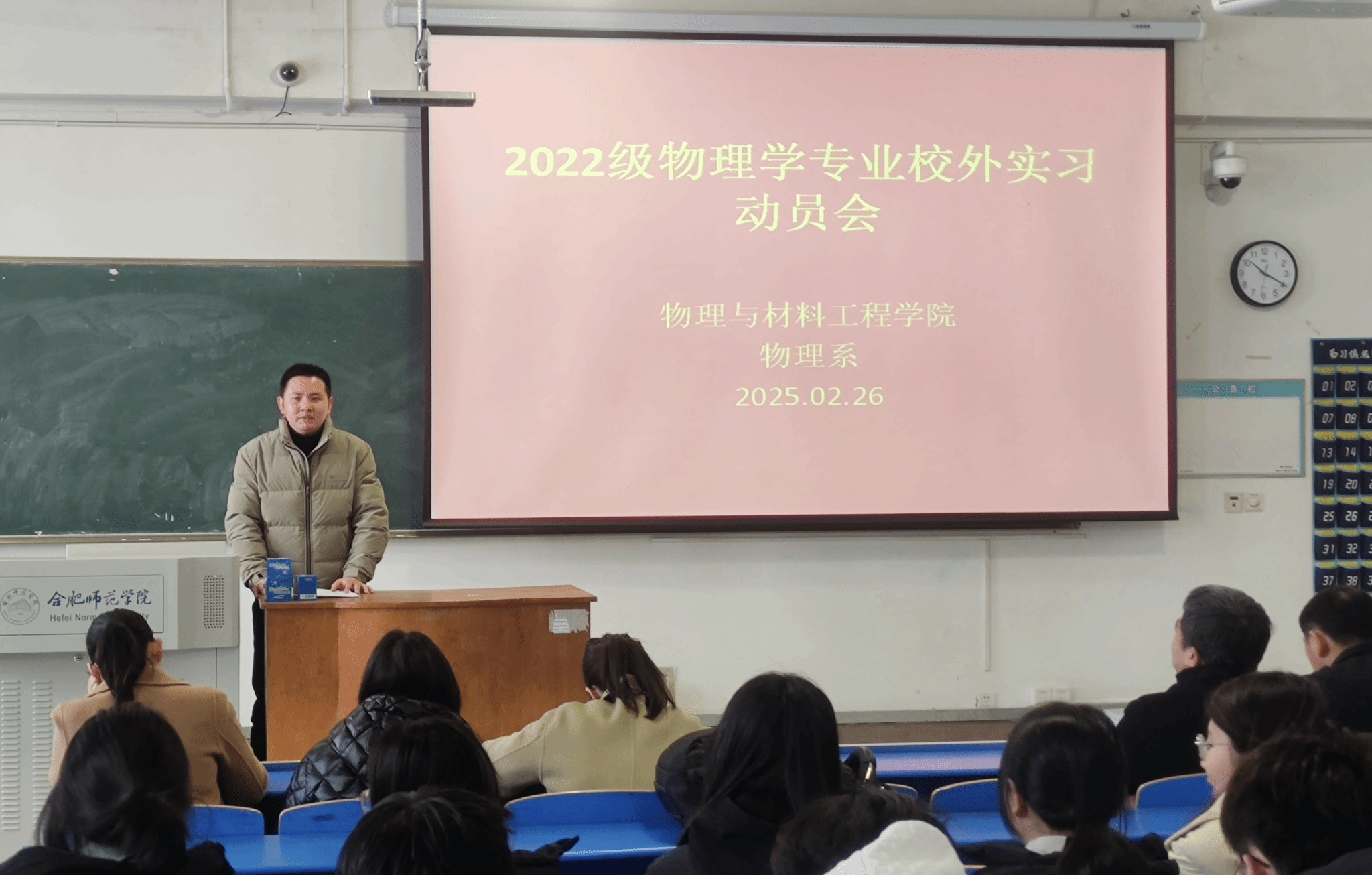2月26日上午,天天莫天天爽学生妹在逸夫楼A106召开了2022级物理学(师范)专业教育实习动员会。学院党委书记吴震、副院长余龙宝、物理系主任沈永才、全体实习指导老师、辅导员及2022级物理学(师范)专业同学参加了本次动员会。