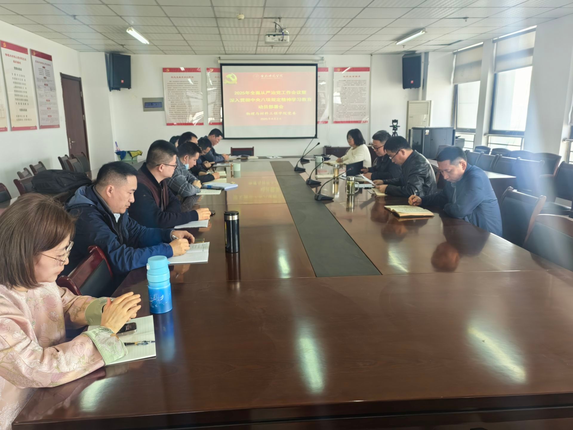 会议集中学习了习近平总书记关于坚持落实全面从严治党政治责任的重要论述,重温学习中央八项规定精神要求,传达学习《中共合肥师范学院委员会关于在全校开展深入贯彻中央八项规定精神学习教育的实施方案》要求,就物材学院开展深入贯彻中央八项规定精神学习教育工作进行了启动部署安排。