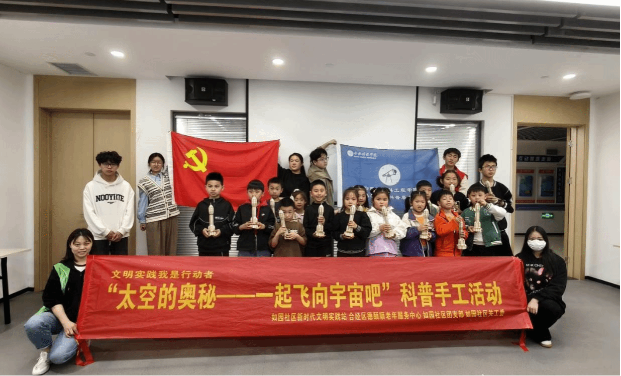 从社区党群服务中心到幼儿园课堂,从传统模型制作到太空模拟体验,“格物思维”科普服务队自2024年启动航天科普计划以来,已形成覆盖幼儿园至初中的阶梯式教育体系。在第三个中国航天日来临之际,科普服务队多次走进学校和社区开展系列科普活动。