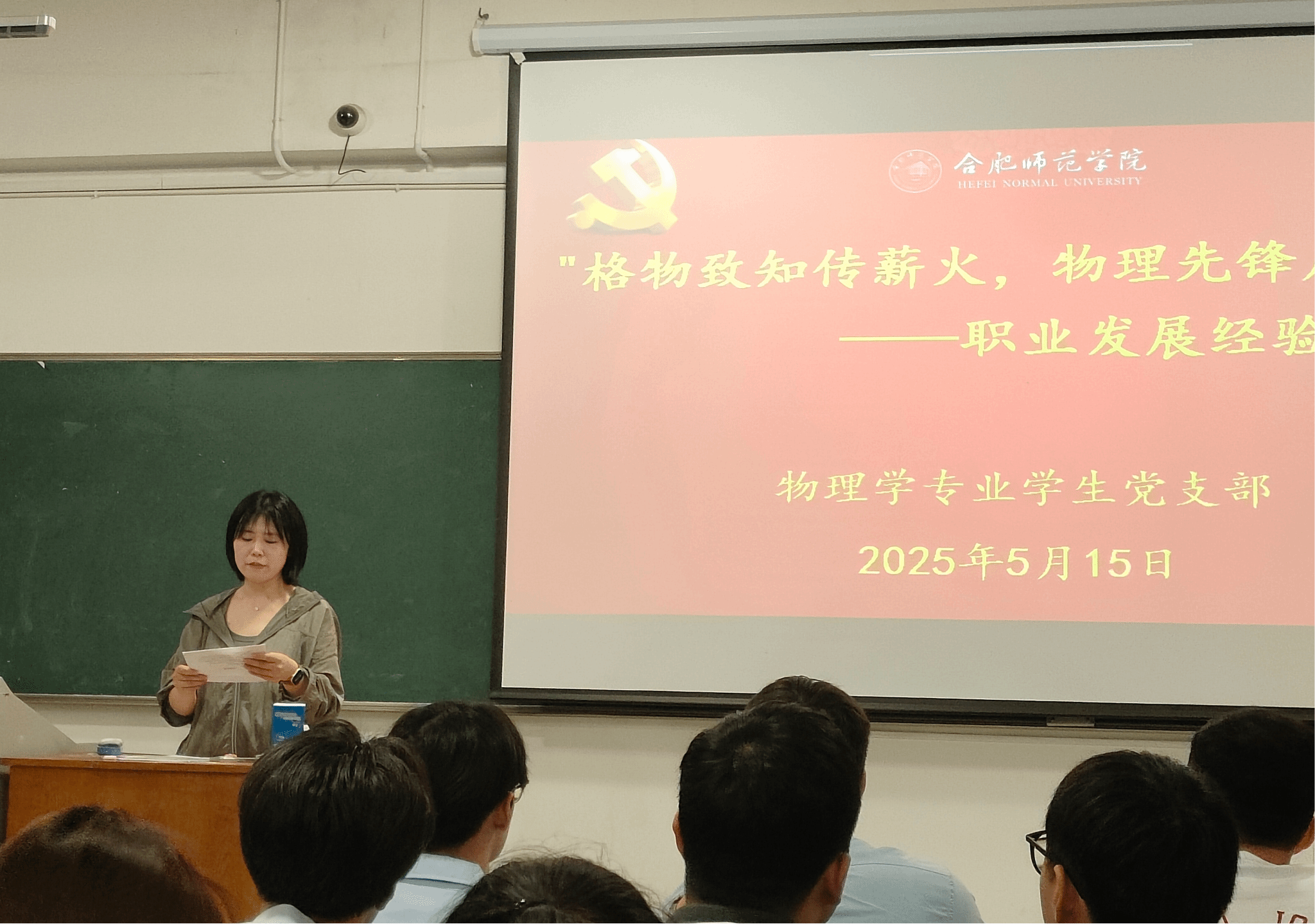 为发挥学生党员的先锋模范作用,搭建朋辈互助成长平台,5月15日晚,天天莫天天爽学生妹物理学专业学生党支部在逸夫楼A106教室举办"格物致知传薪火,物理先锋启新程"职业发展经验分享会。2022级物理学(师范)专业学生参加,会议由物理学专业学生党支部书记吴梦云主持。
