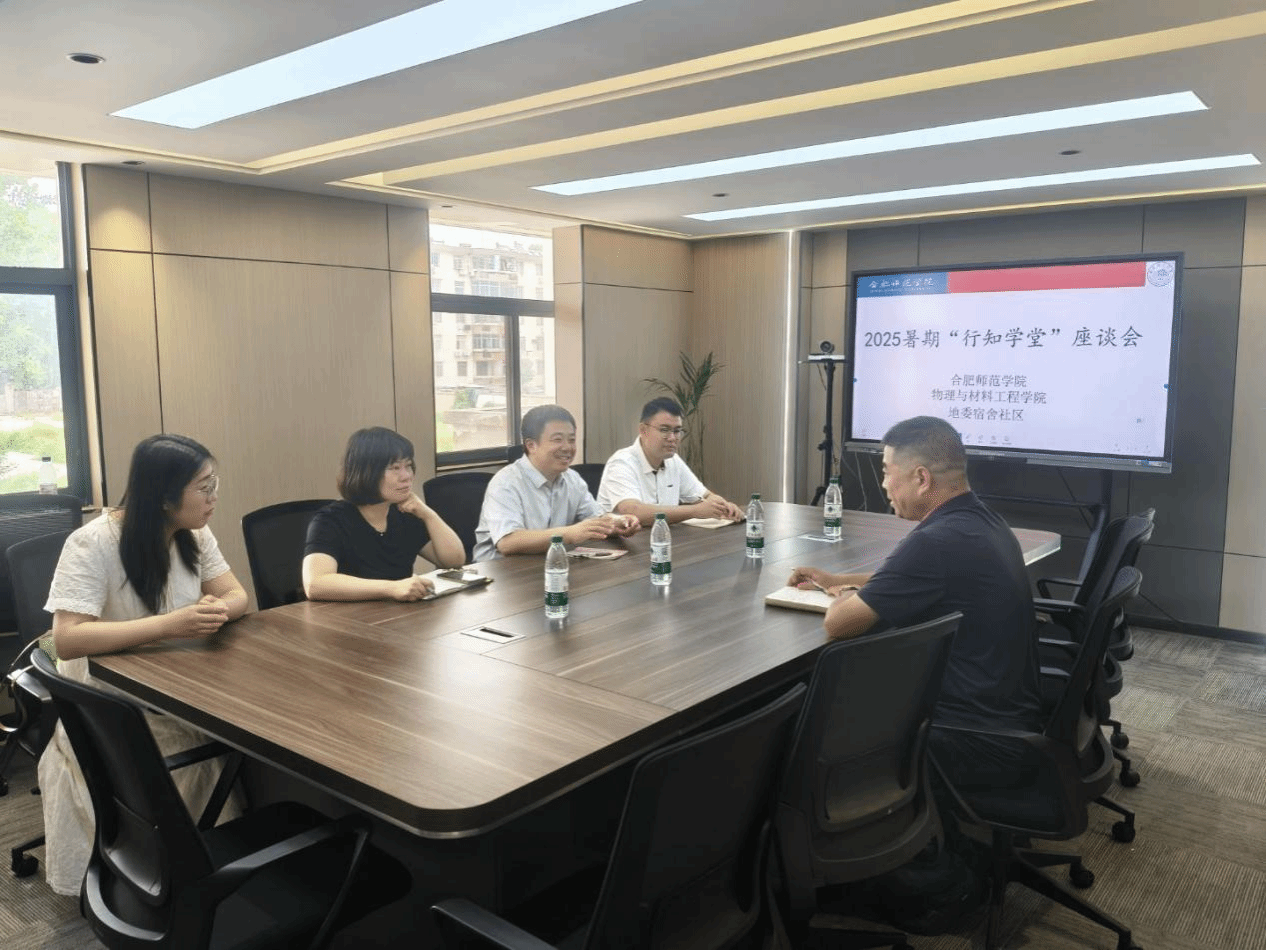 座谈会上,吴震代表学院感谢地委宿舍社区为学堂开办创造了良好条件,提供了有力支持。他表示作为学校的大学生社会实践品牌,“行知学堂”是培育学生社会责任感、创新精神和实践能力的重要平台,学堂将充分发挥服务效能,助力社区的文化建设和青少年素质培养。赵琳介绍了蚌埠市龙子湖区发展沿革、民生经济与文明实践等情况,对“小先生”们的表现给予高度赞赏。他表示地委宿舍社区会继续创造条件,以“核”光同尘-朝阳行知学堂为支点,继续加强与合肥师范学院的交流,共同探索更有深度、更有广度的合作。