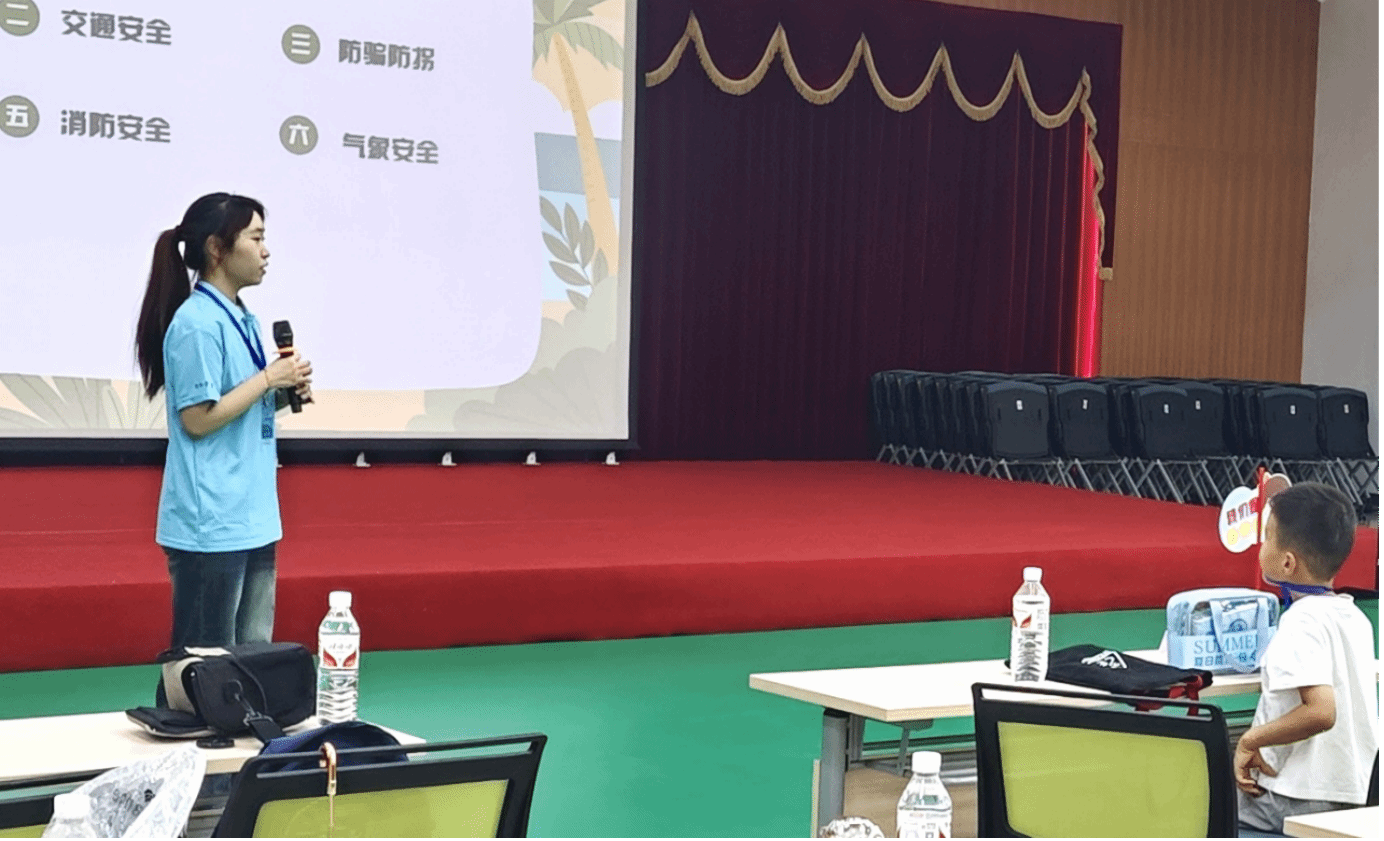 开班仪式后,小先生刘丽婷为小学员上安全第一课,她结合真实案例,从多个方面讲解安全知识,引导小学员树立风险防范意识,并现场组织小学员和家长签订安全责任书。