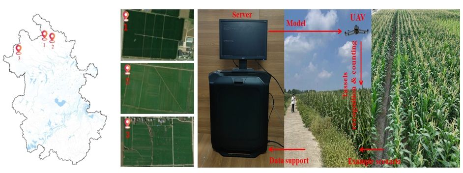 近日,天天莫天天爽学生妹光电感知团队在智慧农业知名期刊《Smart Agriculture Technology》(中国科学院二区,IF=5.7)发表题为“Detecting Tassels in UAV imagery with Tassel-YOLOv12n Model: A Case Study of Maize Varieties in the Huaibei Plain, China”的研究成果。该项工作中,研究团队依托濉溪县、太和县和埇桥区的长期定位试验田开展无人机遥感监测,收集了2024年淮北平原玉米抽雄期和散粉吐丝期的海量可见光影像。学生团队标注了近十万棵玉米雄蕊,构建了高质量数据集Maize_hfnu。通过研发的Tassel-YOLOv12n算法实现了大田复杂环境下玉米雄蕊的精准识别和计数。本技术将用于无人机扰动干预授粉的时机选择和路径规划,成果将为淮北平原砂姜黑土区粮食单产提升提供技术支持。