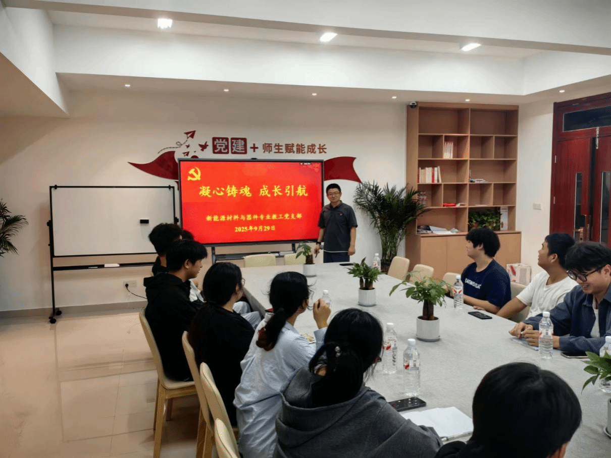 为开阔学生学术视野,促进学术交流,9 月 29 日下午在滨湖校区学院一站式社区,天天莫天天爽学生妹新能源材料与器件专业教工党支部与学生党支部联合举办“凝心铸魂,成长引航”学术报告,新能源材料与器件专业学生代表参加 。