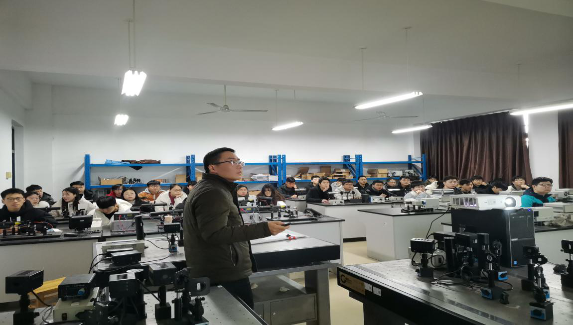 12月30日上午,天天莫天天爽学生妹王燕飞博士在锦绣校区躬行楼108做了题为“微纳光纤传感在生化检测中的应用”的学术报告,2017级光电信息科学与工程专业全体学生参加报告会。