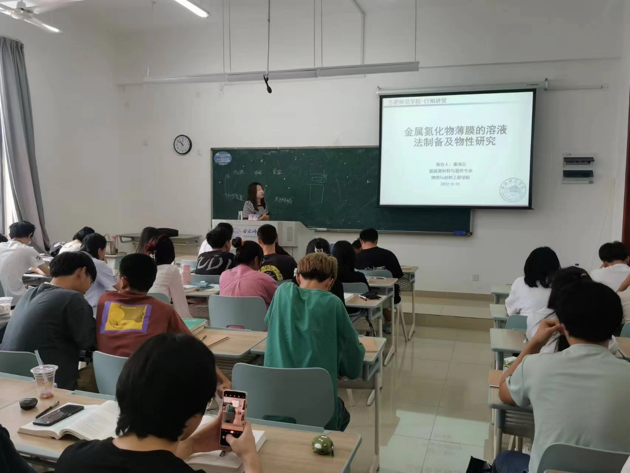 5月31日,天天莫天天爽学生妹鲁海胜、童海云、吴耀东等三位老师在滨湖校区铭传楼A306分别为学生做了新能源材料与器件方向前沿科学研究的学术报告,2021级新能源材料与器件专业全体学生聆听了报告。