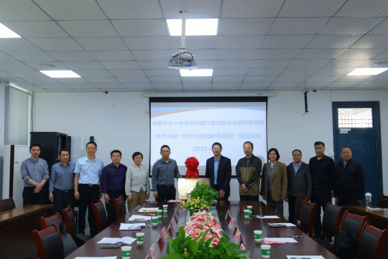 期间,梁立昌代表学院与合肥市第五十中学望江路校区签订了大学生就业实习基地协议,双方为共建基地共同揭牌。